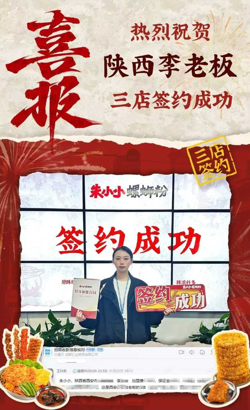 热烈祝贺_陕西李老板签约朱小小螺蛳粉三店成功
